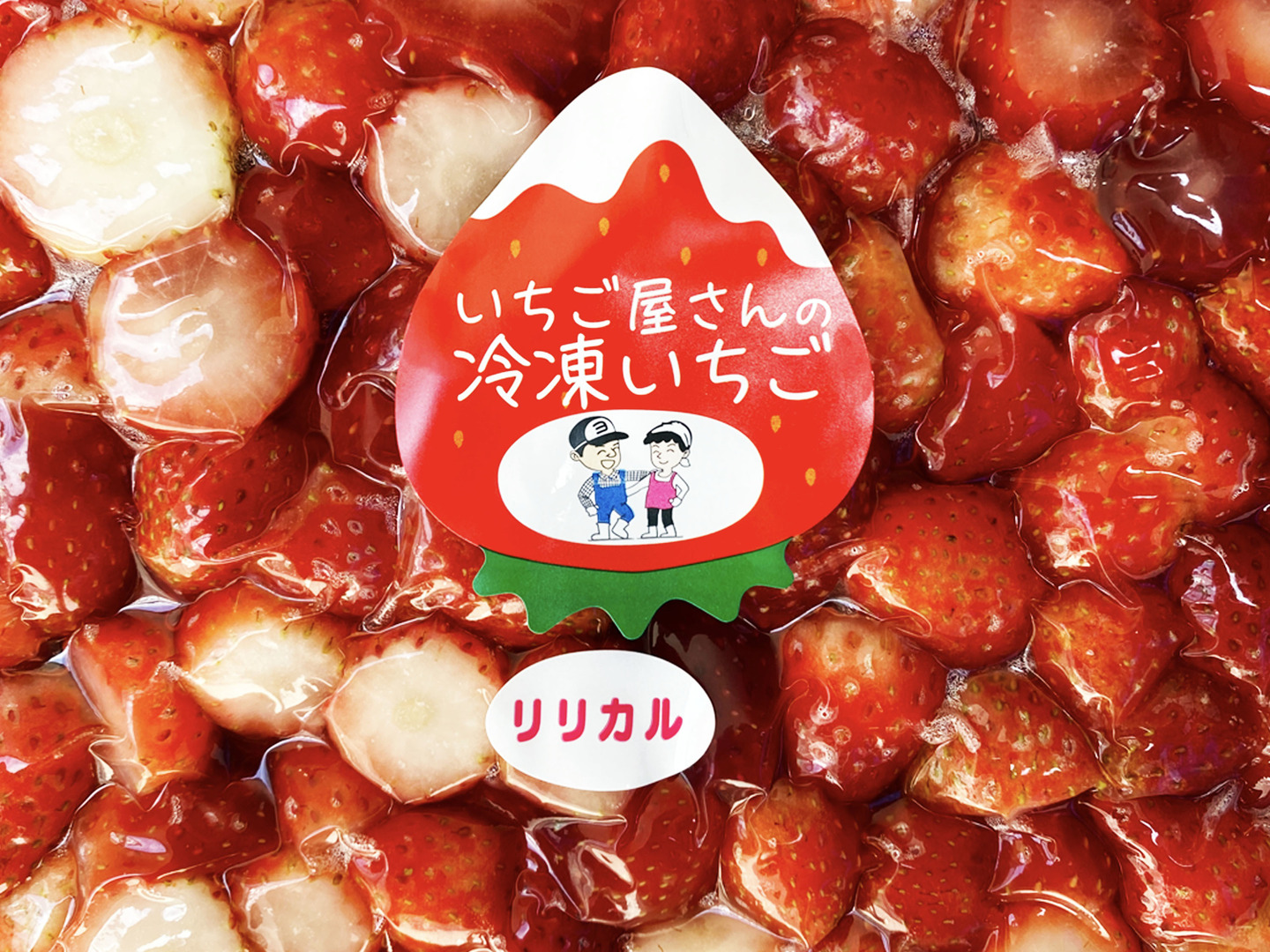 完熟のイチゴのみを早朝に収穫後、すぐに選別し真空パックし冷凍。
