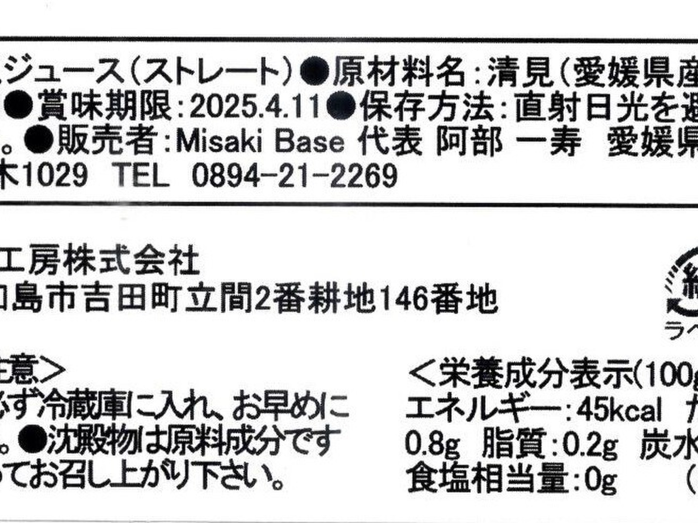 - 樹上で完熟させた果実のみを使用しています