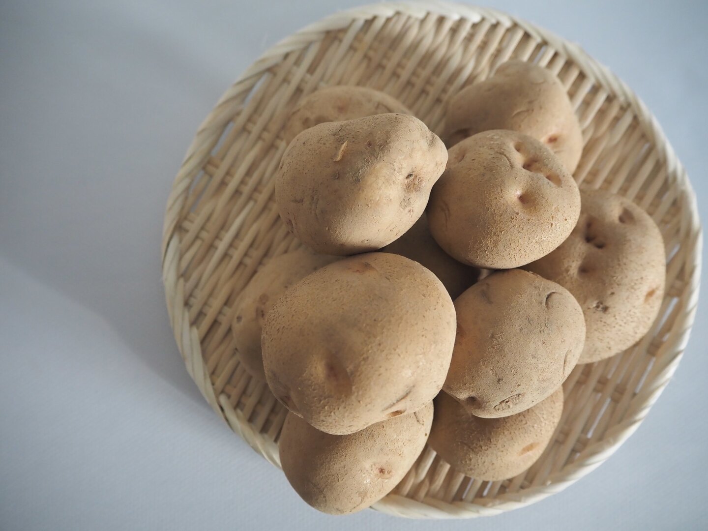 特徴は、目が赤く、黄色い色のじゃがいもで甘くて、煮崩れしやすい。