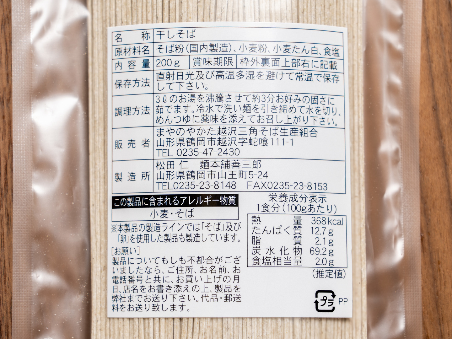 三角そば粉(鶴岡市越沢産)小麦粉、小麦粉たん白、食塩