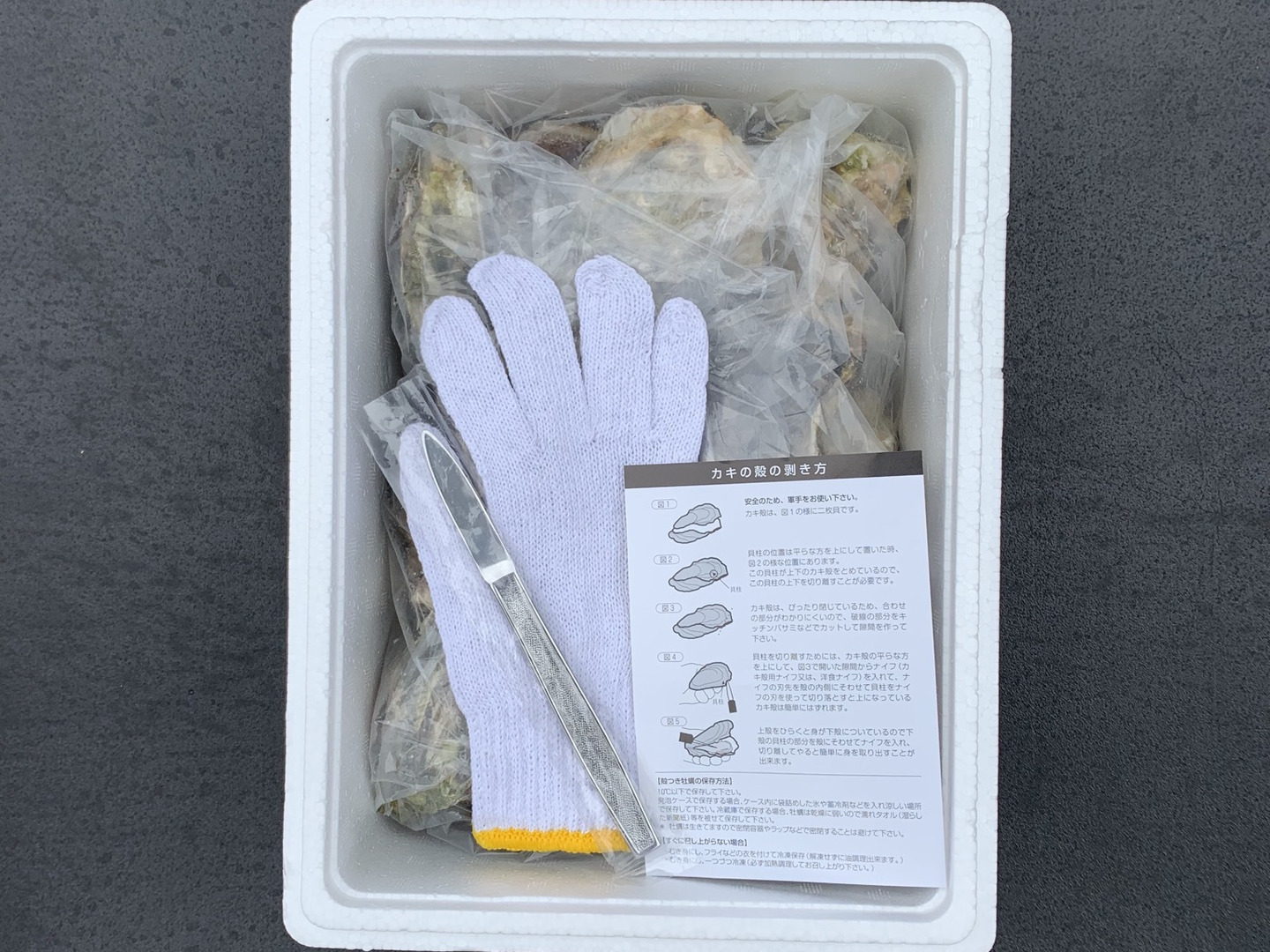 軍手、牡蠣ナイフ