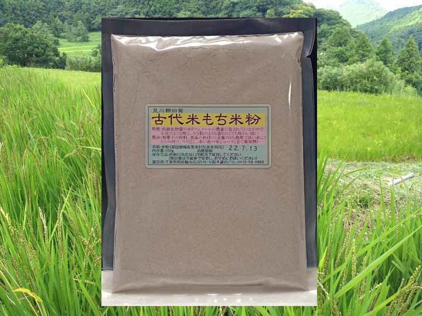 特徴:良質な米が育つ条件を満たした”荒川棚田”にある水田で作られた特別な古代米をオゾン殺菌した製粉所内で製粉、包装したものです。