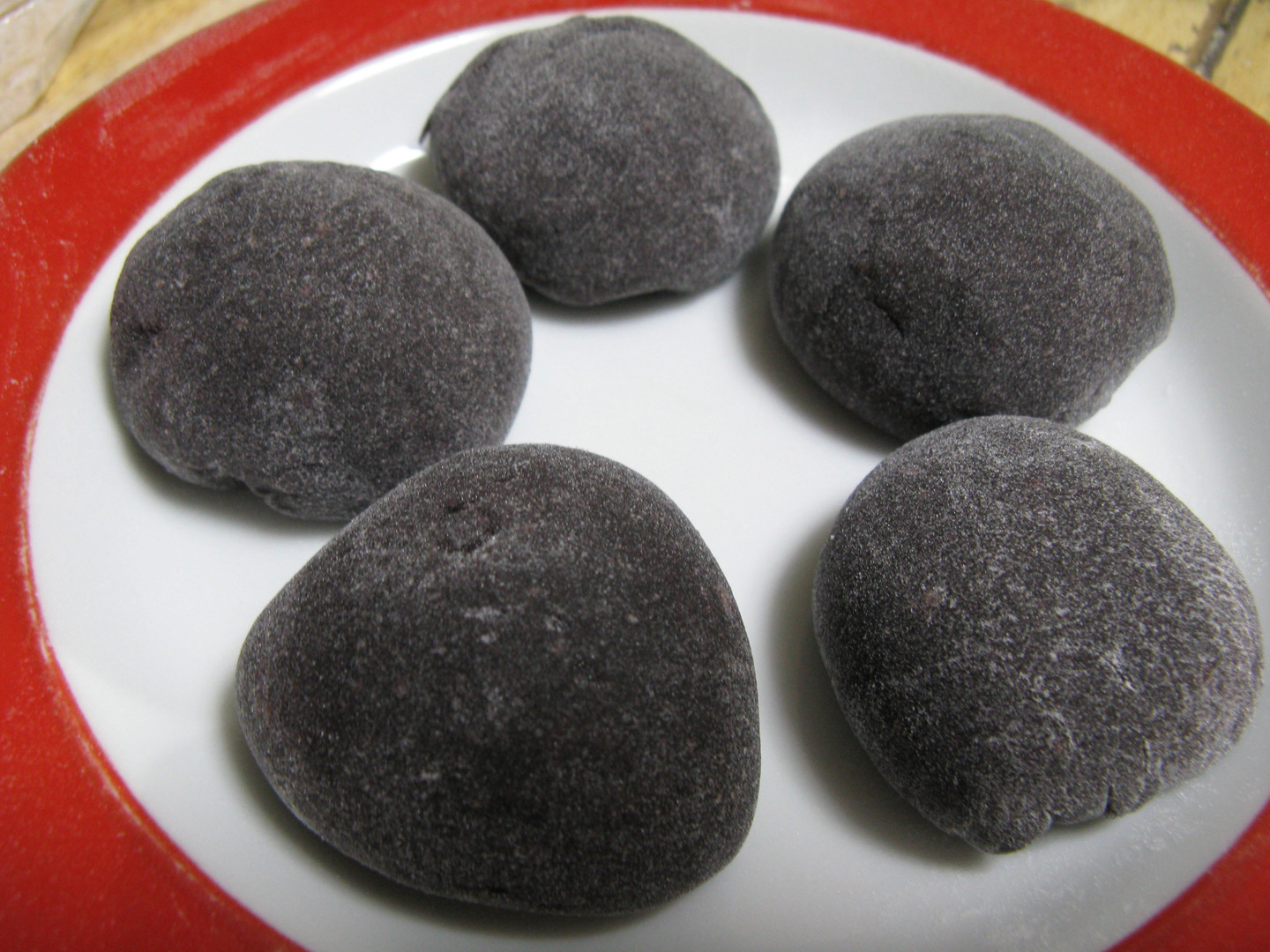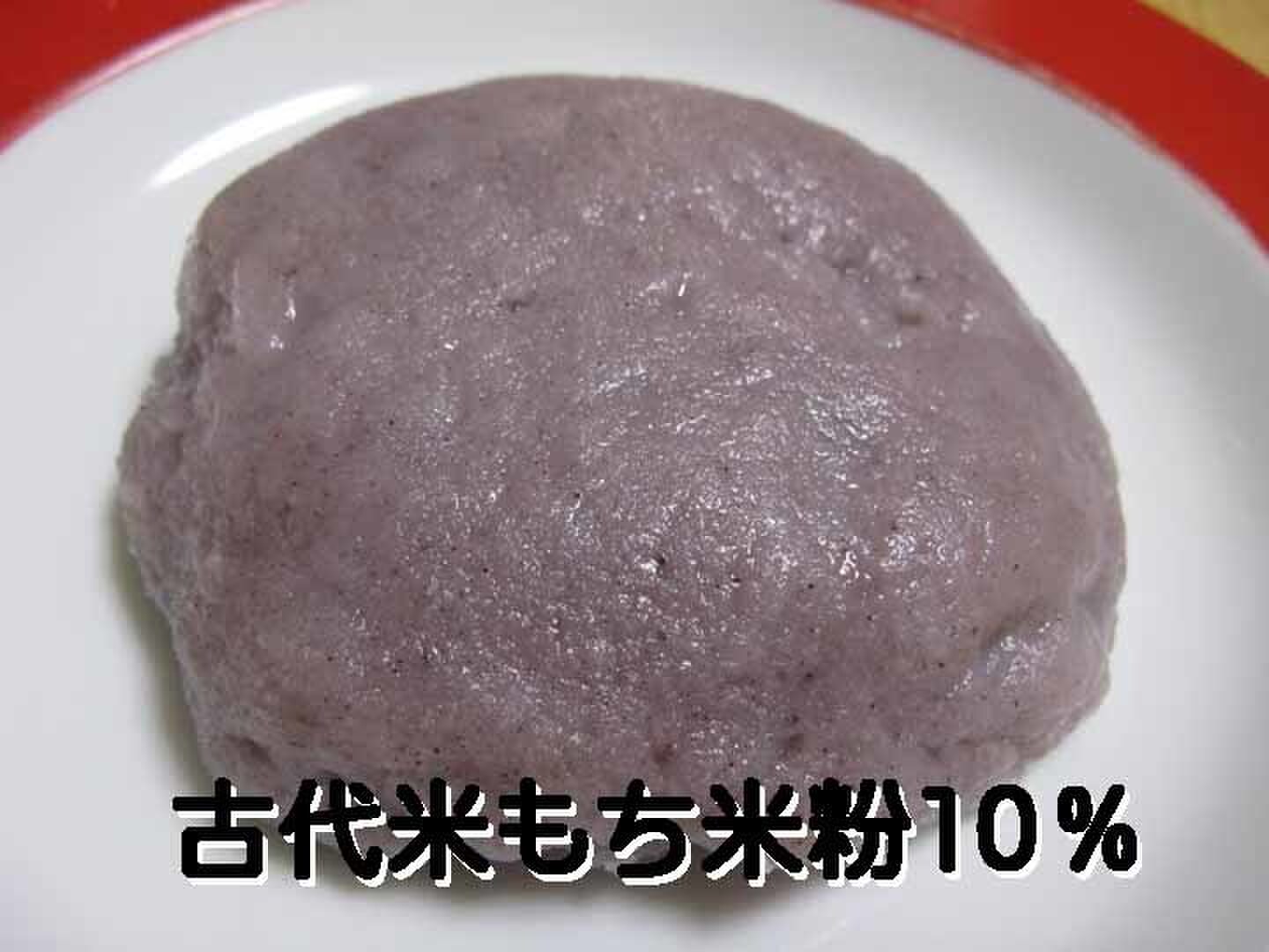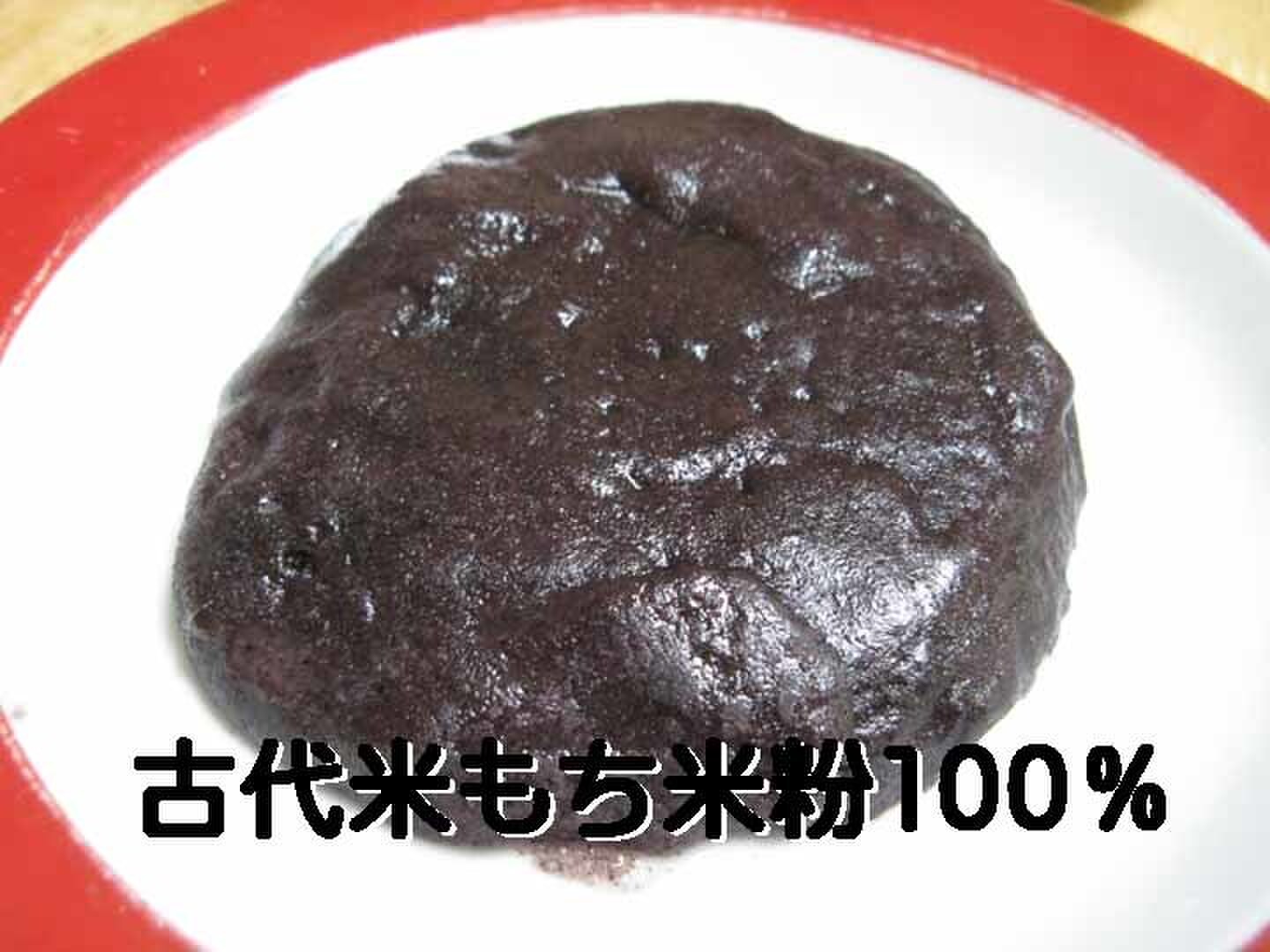 使い方:市販の白玉粉に白玉粉の30%程度の「古代米もち米粉」、50%の砂糖、合わせた量と同量の水を加えよく混ぜ、電子レンジで加熱、少し固まりかけたら一回取り出し混ぜて、再度電子レンジで様子を見ながら全体がかえり、少し冷めたら片栗粉をまぶしながら丸めると和菓子の出来上がり。