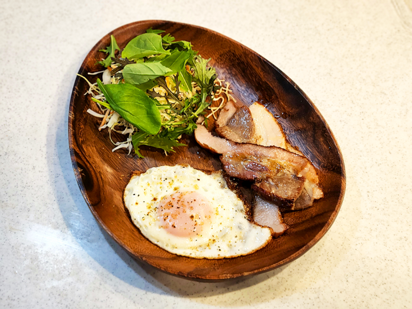 ゆっくり弱火で焼くことで、ベーコンの脂の旨みが出て香ばしくなります。