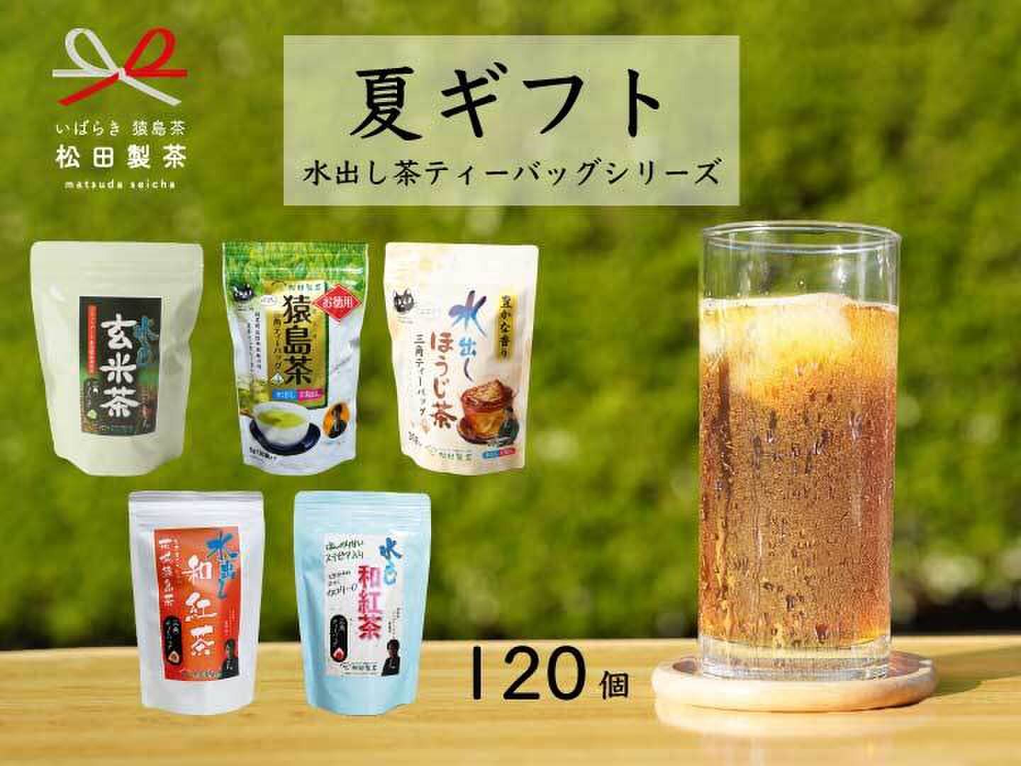 【ギフトにも最適】水出しティーバッグセット お徳用猿島茶 水出しほうじ茶 水出し玄米茶 水出し和紅茶 ステビア和紅茶 合計120入 プレゼント包装出来ます GFT-071
