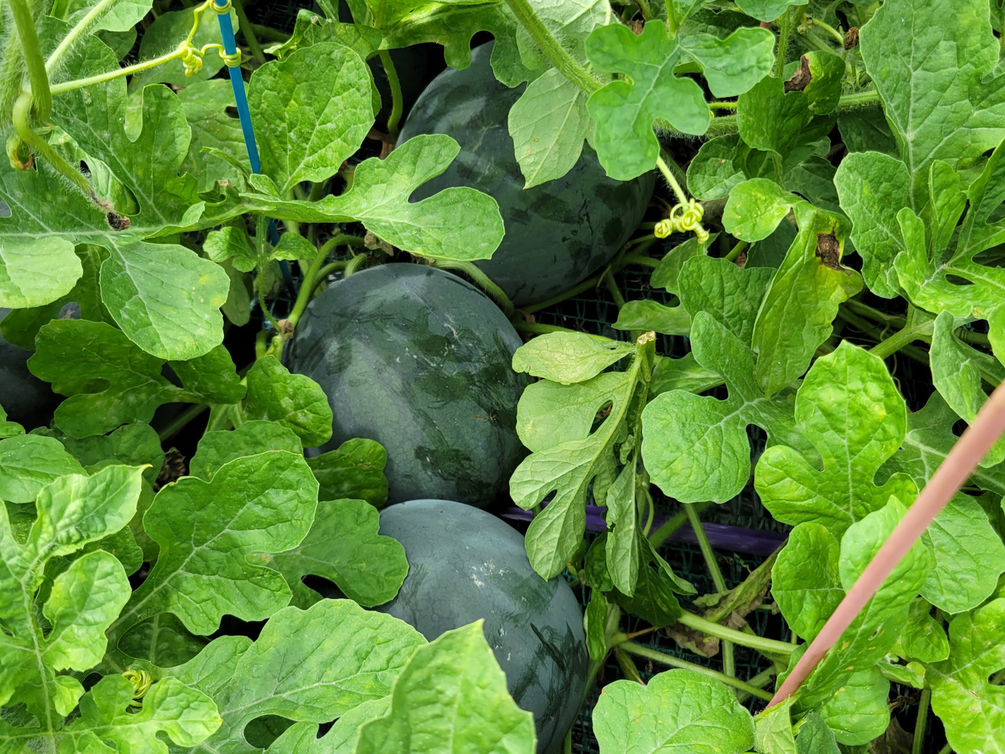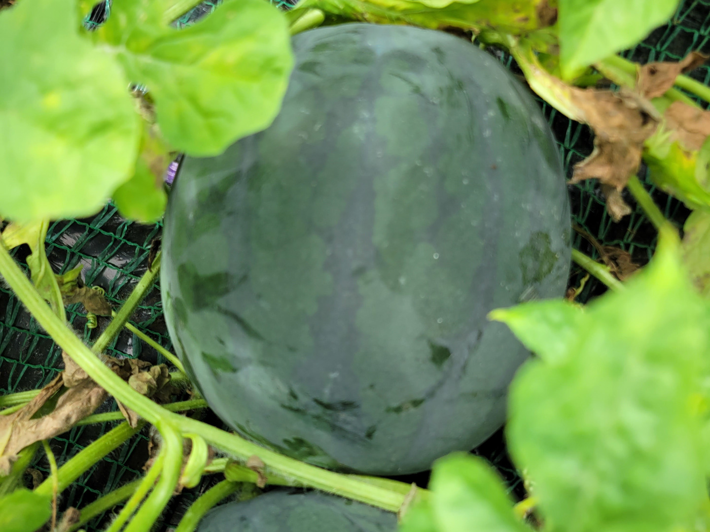 ①大玉スイカのシャリ感と、小玉スイカの甘さを掛け合わせた品種。