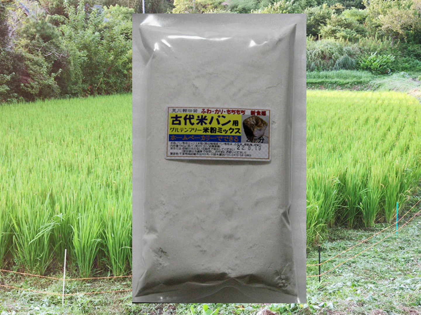 特徴:この荒川棚田発グルテンフリー「古代米パン専用米粉」は、自宅のホームベーカリーで、もちもちの米粉パンを作るために専用の水田で稲を育て、パン用米粉に適した製粉方法で製粉し、ふくらみがよくなるようにブレンドした米粉です