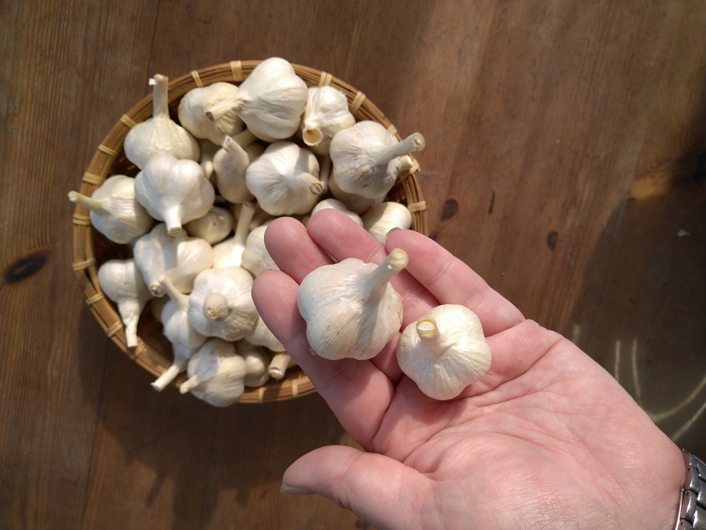 小さくて訳あり!にんにく【1キロ】小さめサイズで色々!青森ホワイト六片種(乾燥)【農薬化学肥料不使用】