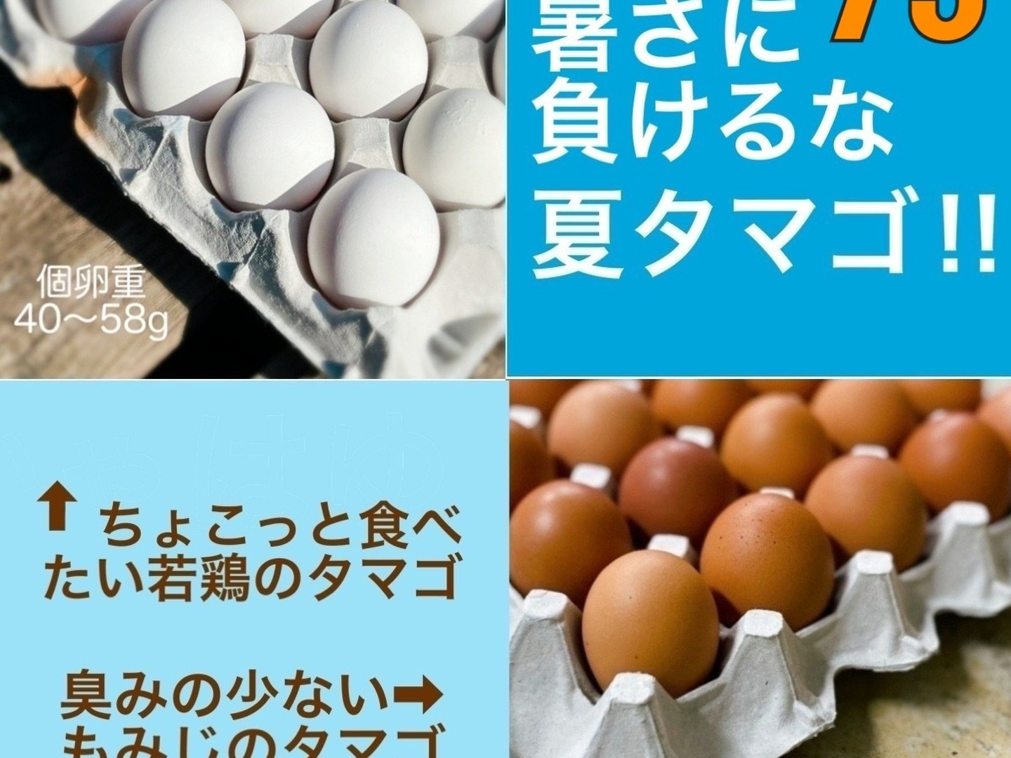 暑さで食欲が落ちがちな季節ですが、栄養価の高いタマゴで夏バテ知らずでお過ごし下さい(^o^)