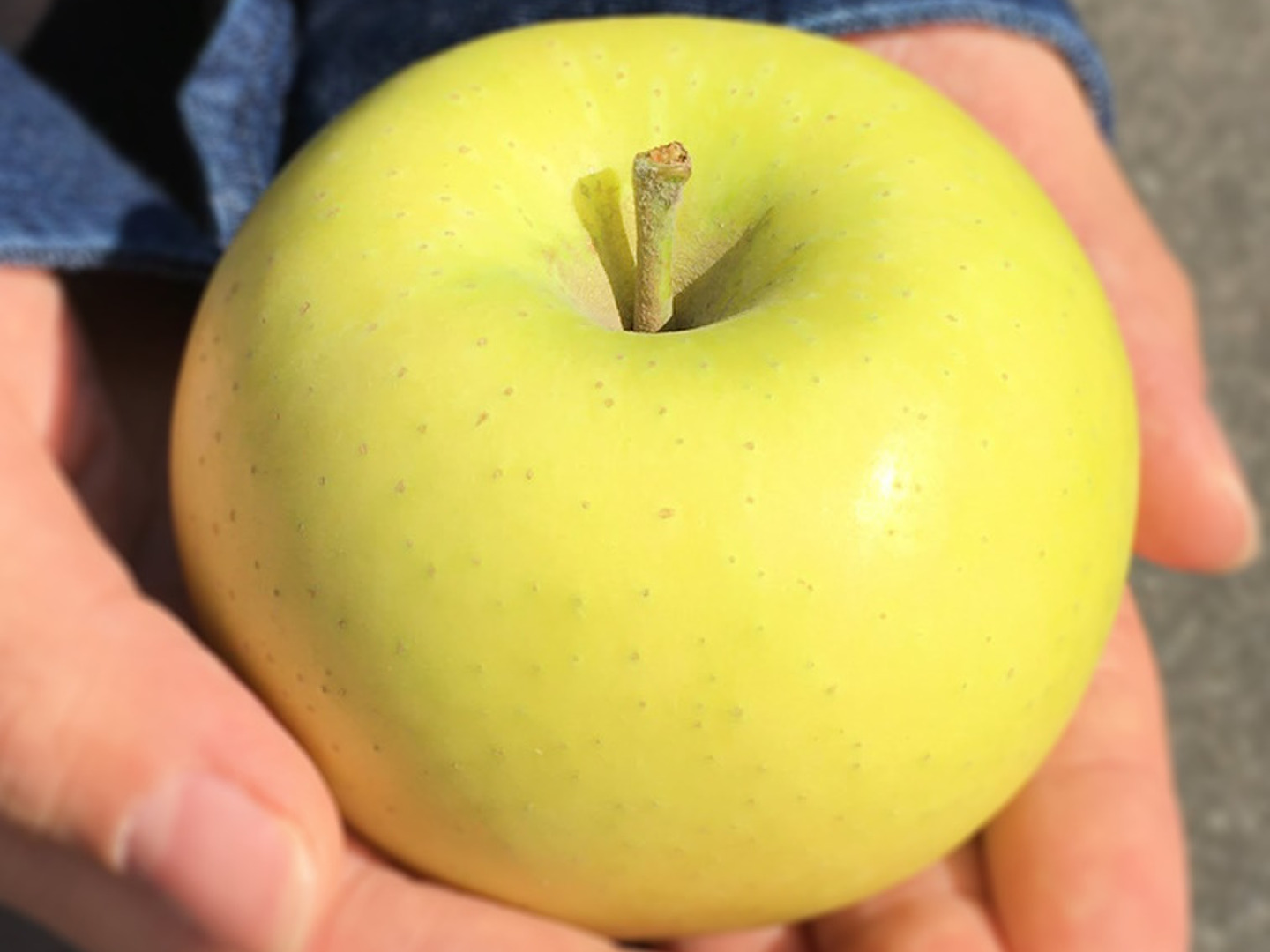 シナノゴールドは歯ごたえのいいパリッと硬めの食感と、酸味と甘味が調和した濃厚な味が特徴。