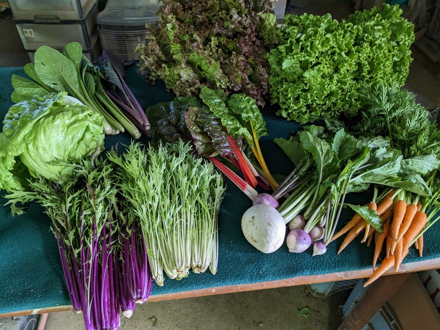 じゃがいも(2kg)=レッドムーン+とうや、 たまねぎ(2kg)、 人参(1kg)、 季節の野菜2品