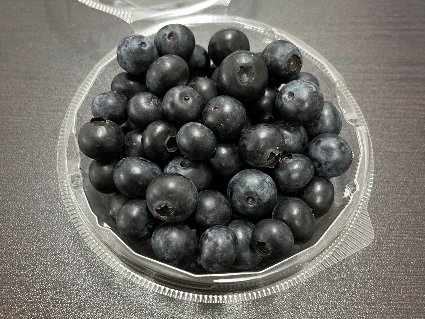 (ブルーベリーに白い粉がついている場合がありますがブルームというもので新鮮な証拠です。農薬ではございません。)