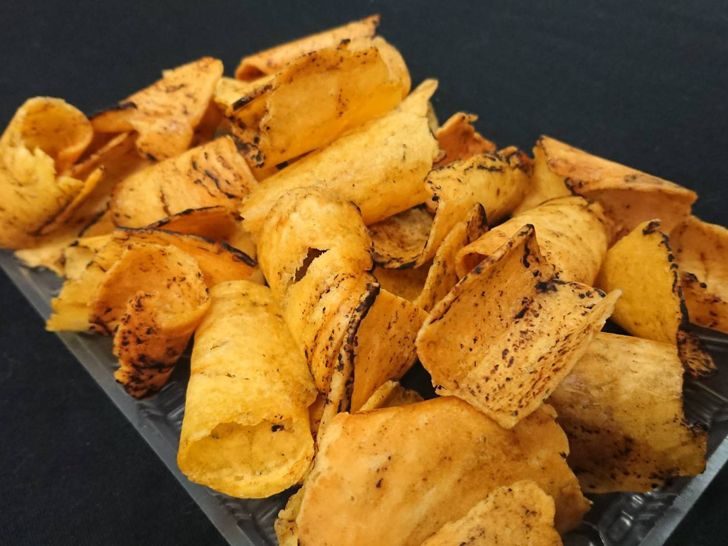紅はるかをキュアリング(熟成)し、美味しさと甘さをぎゅっと閉じ込めた優しいお味の干し芋を炙ってアクセントをつけ薄いせんべいにしました。