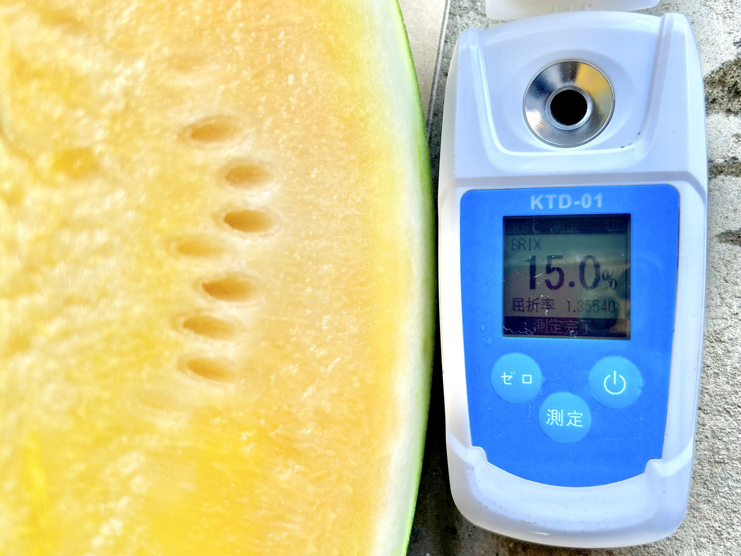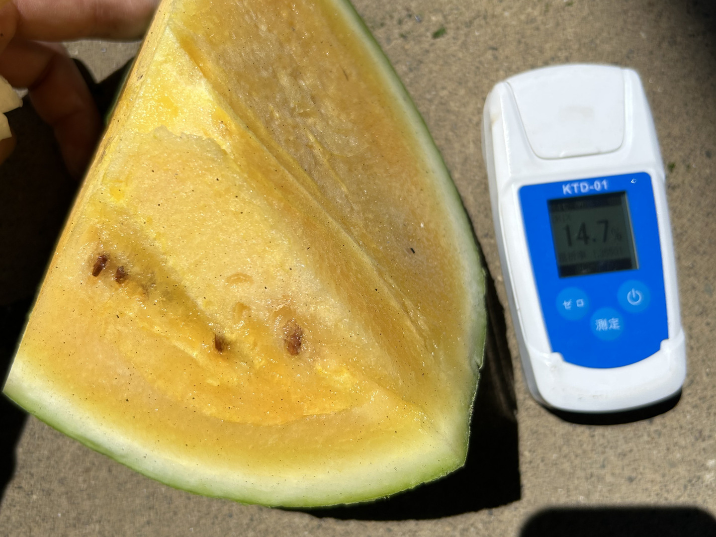 黄色いスイカは糖度11度あれば甘いと言われていた中で、この品種は15度前後が頻繁します。
