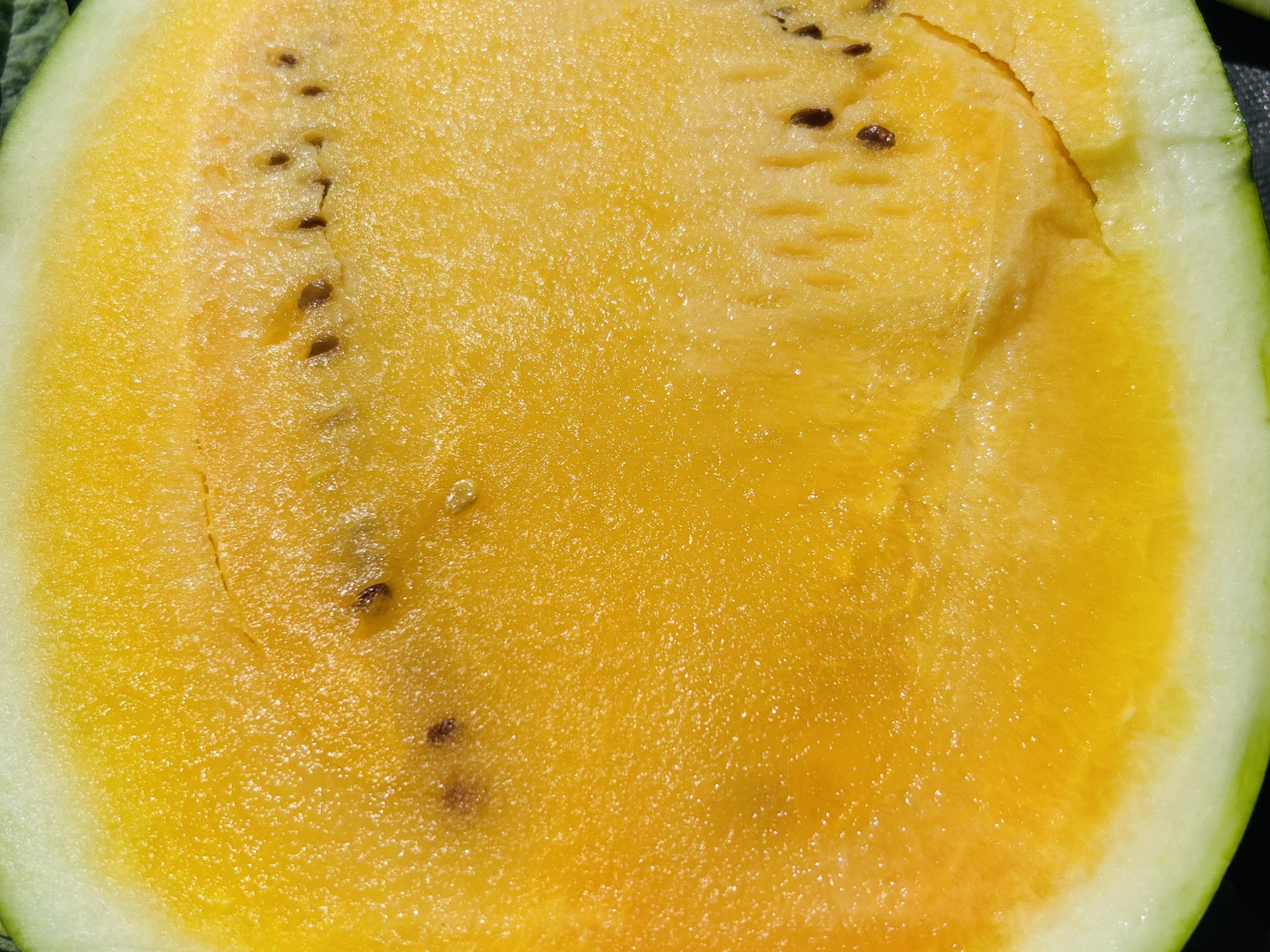 果肉は黄色〜オレンジ色で、種が薄茶色でシャリっと甘い。