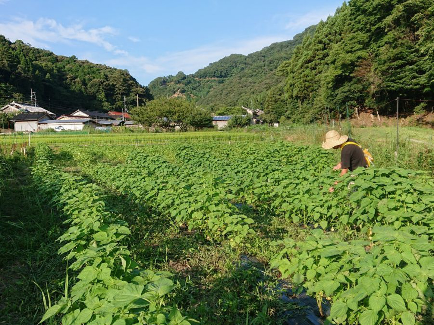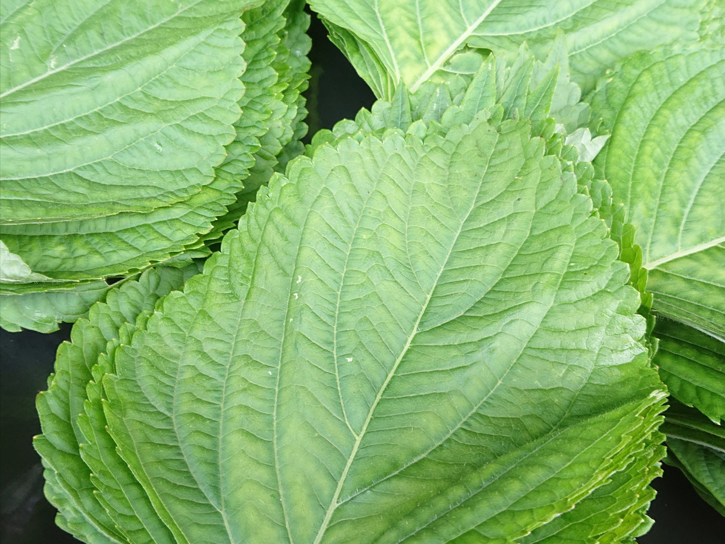 風通しを良し柔らかく風味豊かな 「えごまの葉」を育ています。