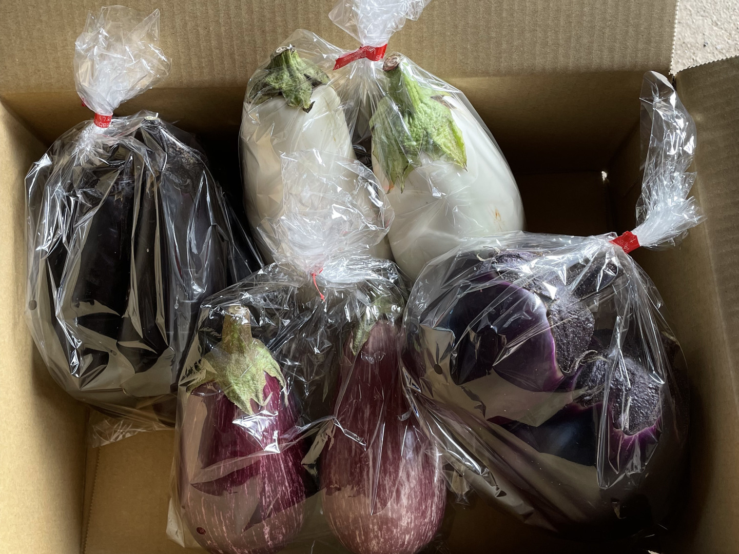 くろべえなす3〜5個、とろ〜り旨なす2〜3個、グリルでイタリアなす2〜3個、縞むらさきなす1個、夏野菜1種類