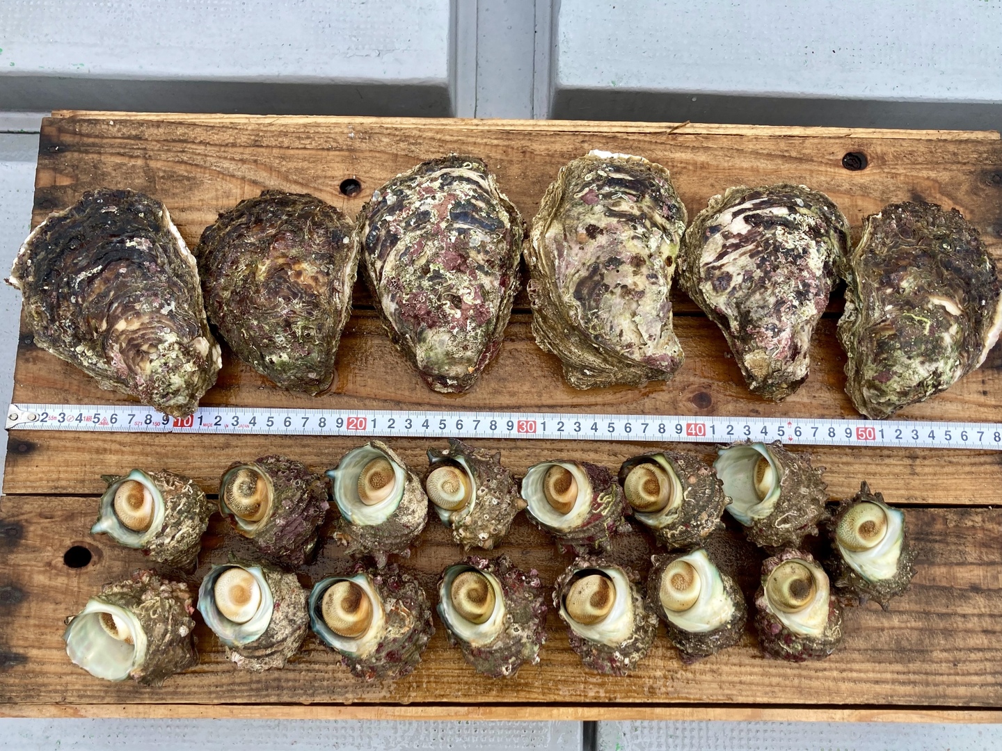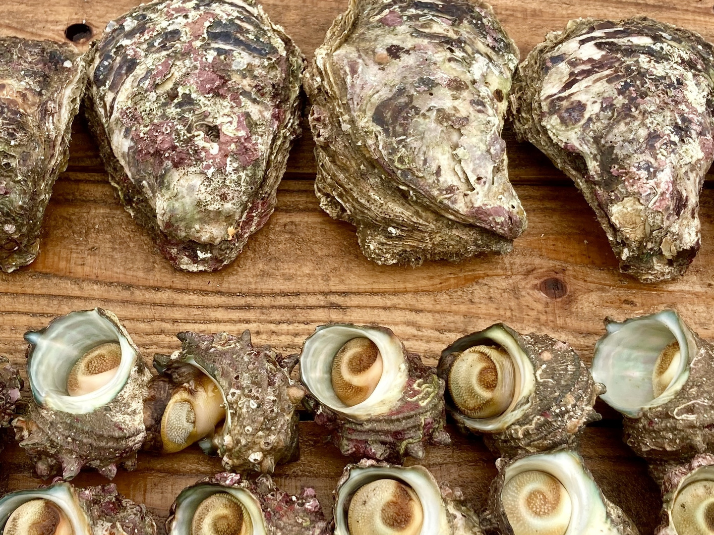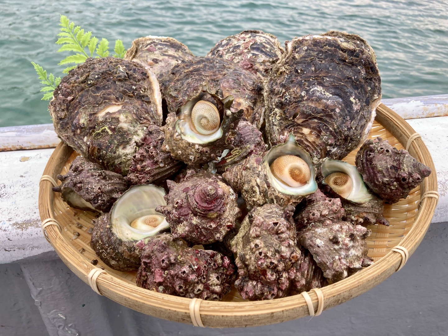 今が旬、期間限定の『岩牡蠣』と、平良丸の売れ筋商品『サザエ』のセットです。