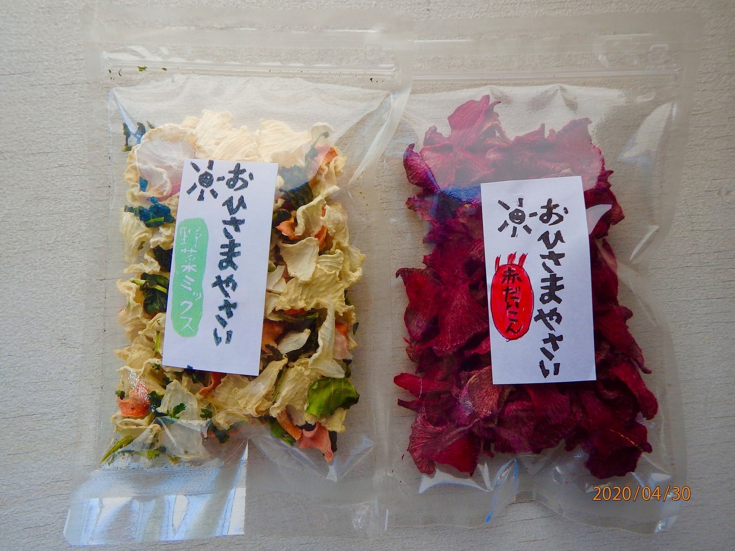 わっぱファームで栽培したお野菜をおひさまの力を借りて干しあげました。干すことで栄養価も高まり、野菜本来の甘さに加えおひさまパワーでさらに甘さ凝縮!