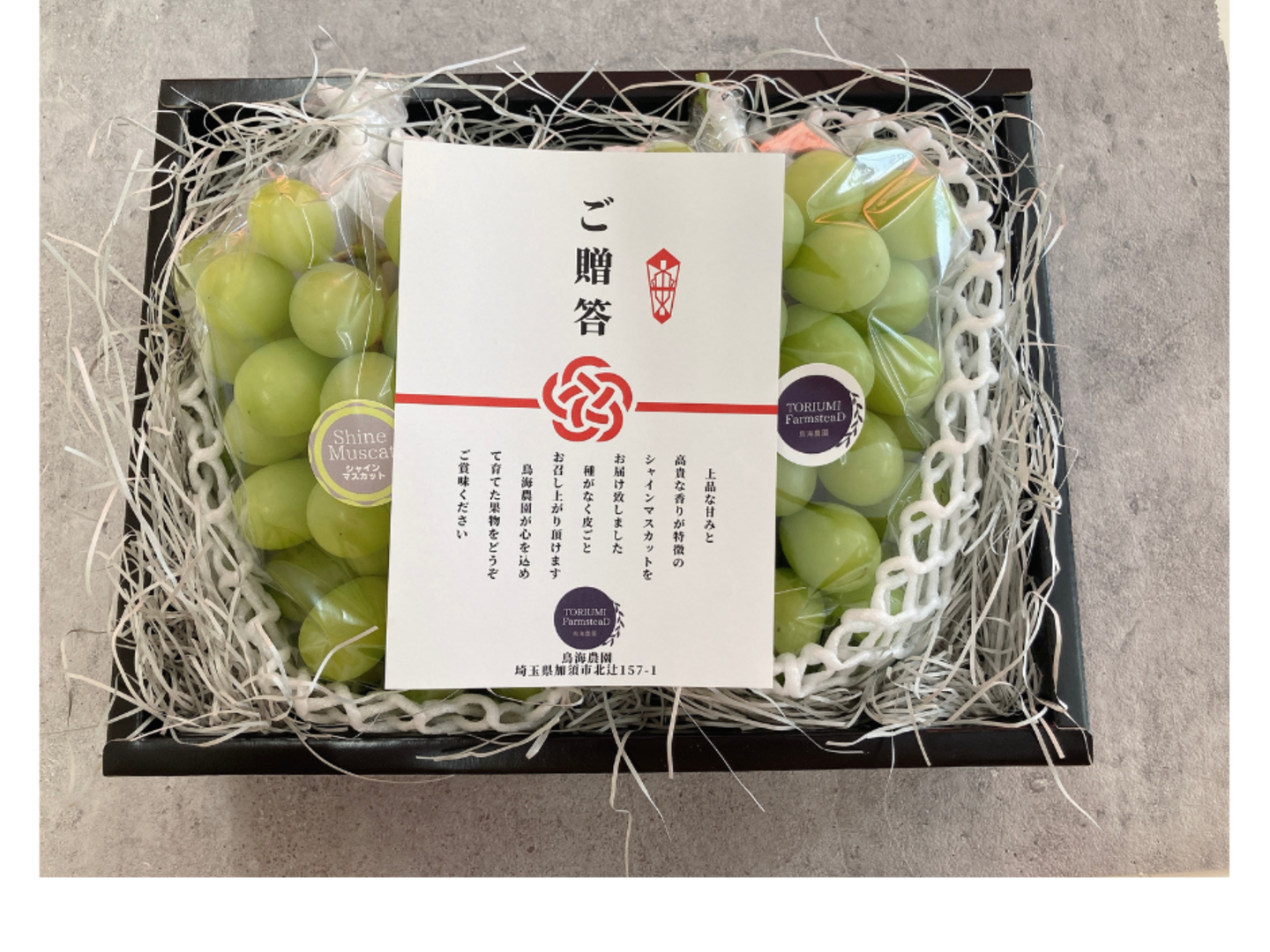 2023年に埼玉県加須市の優れた農産物として、鳥海農園のシャインマスカットをかぞブランドに認定していただきました。