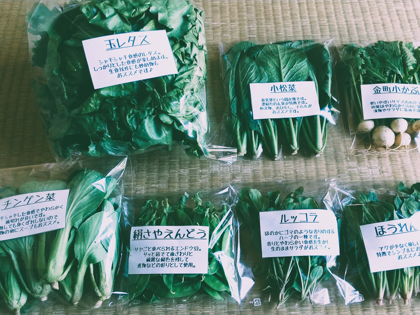 ・サトイモ ・サツマイモ ・ダイコン ・ニンジン ・ネギ ・ニンニク ・タマネギ ・ミズナ ・ルッコラ など