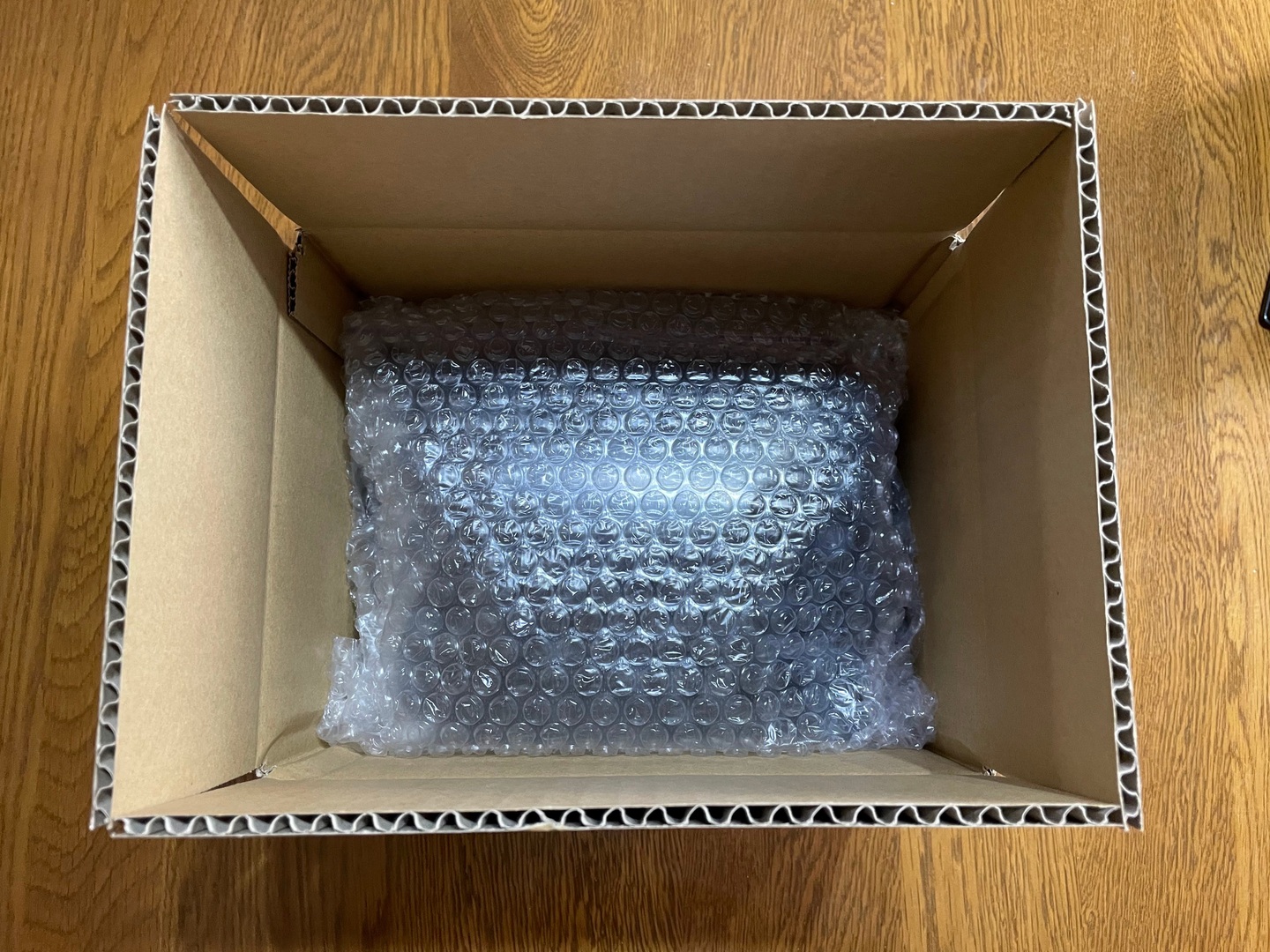 緩衝材としてプチプチで包んだ状態で梱包します。