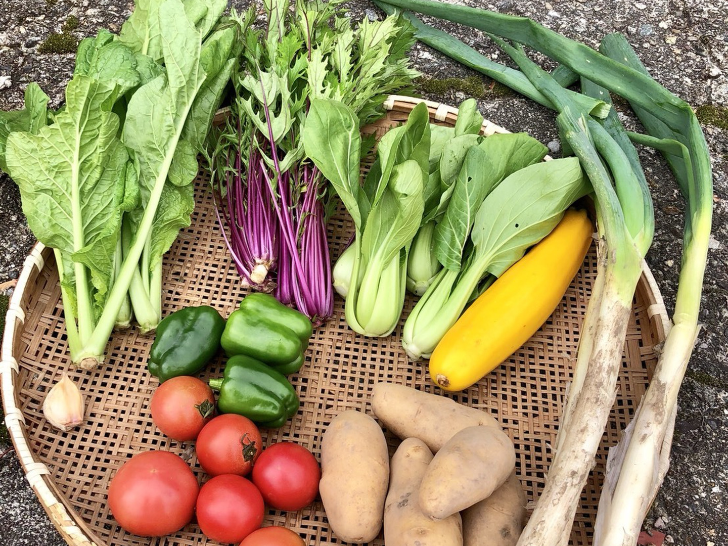 大根、白菜、小松菜、チンゲン菜、赤茎水菜、かぶ、人参、ケール、菊芋、トマト、ミニトマトなど。