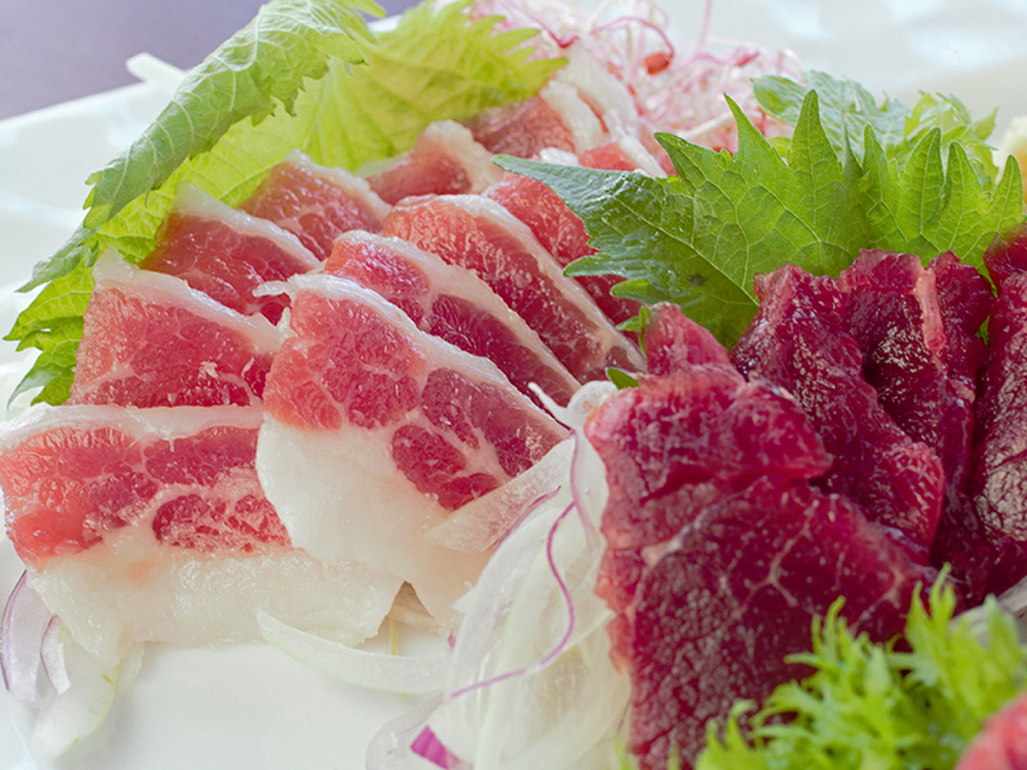 馬刺しの定番3種(霜降り、赤身、フタエゴ)のセットです。