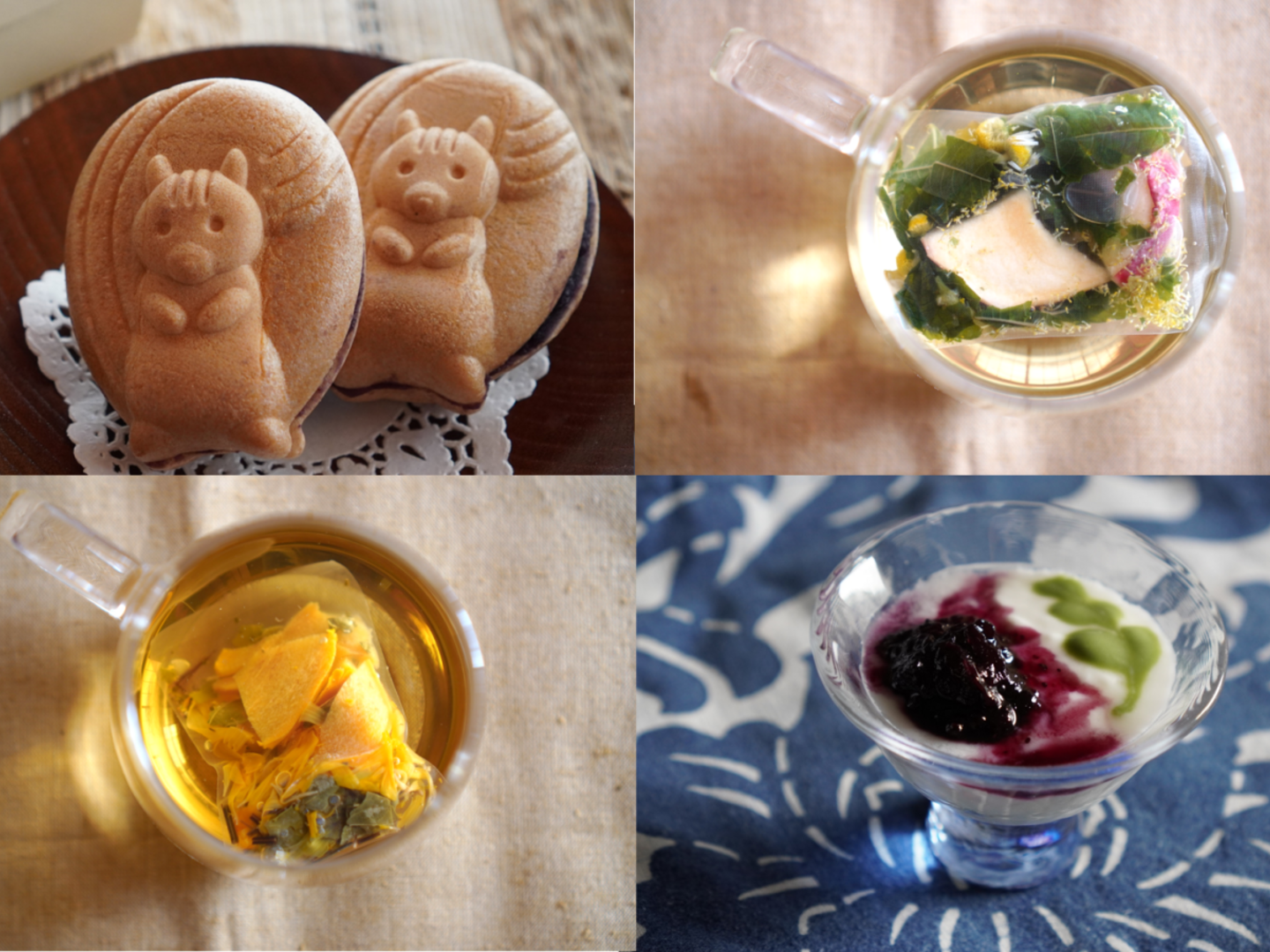 | 内容 | ジャム120g×2、あん(袋入り)200g×1、最中(袋入り)3セット×2、ハーブティ(りんご・かき)×各1 | ||||||