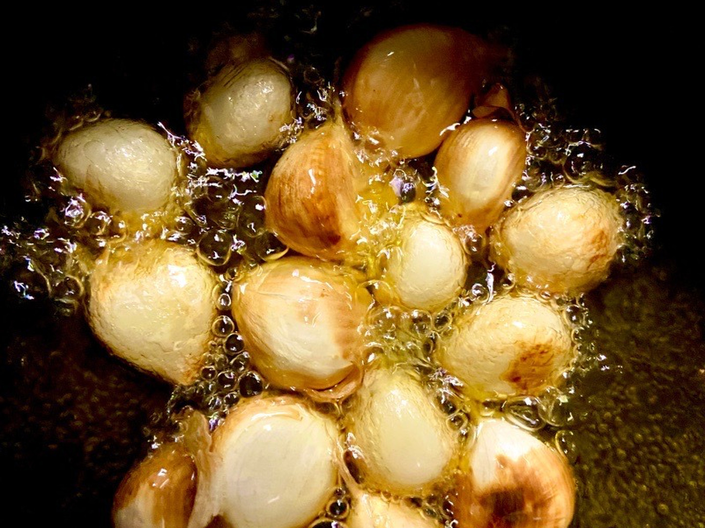沢山のニンニクをオリーブオイルでじっくり揚げて、お好みの具材を入れるにんにくゴロゴロアヒージョ……