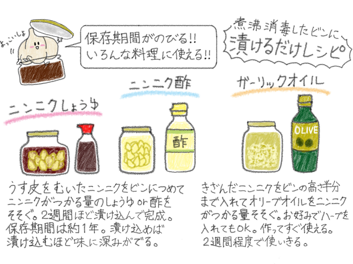 内容量の多い商品ですので、ニンニクのオイル漬けや醤油漬け、味噌漬けなど、さまざまな保存食にも是非ご活用下さい。