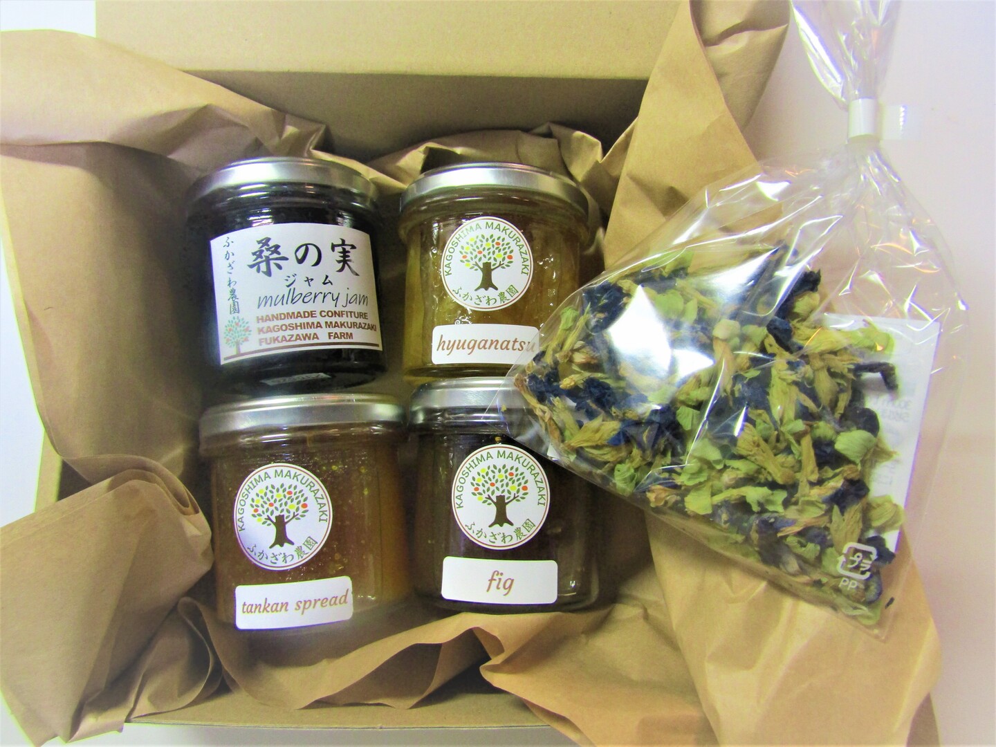 | 内容 | 桑の実・日向夏・いちじく・たんかんスプレッド 各1個、バタフライピー | ||||||