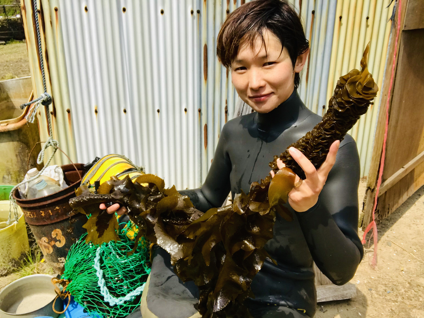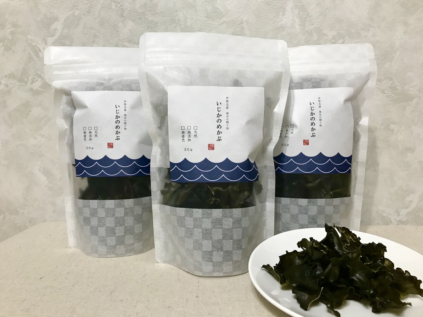 伊勢湾の海で鍛えられた天然ワカメの【めかぶ】を海女が素潜りで採取し、乾燥から袋詰めまで一貫して生産しました。