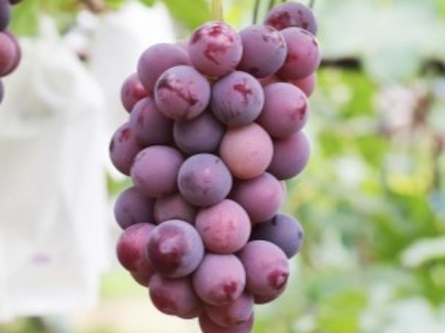 ②ベニバラード‥種あり。パリッと皮ごと食べられる、酸味の少ないぶどう。「リンゴのような風味で食べやすい!」と人気です。