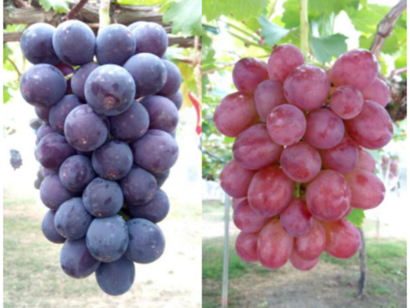 ②ベニバラード‥種あり。パリッと皮ごと食べられる、酸味の少ないぶどう。「リンゴのような風味で食べやすい!」と人気です。