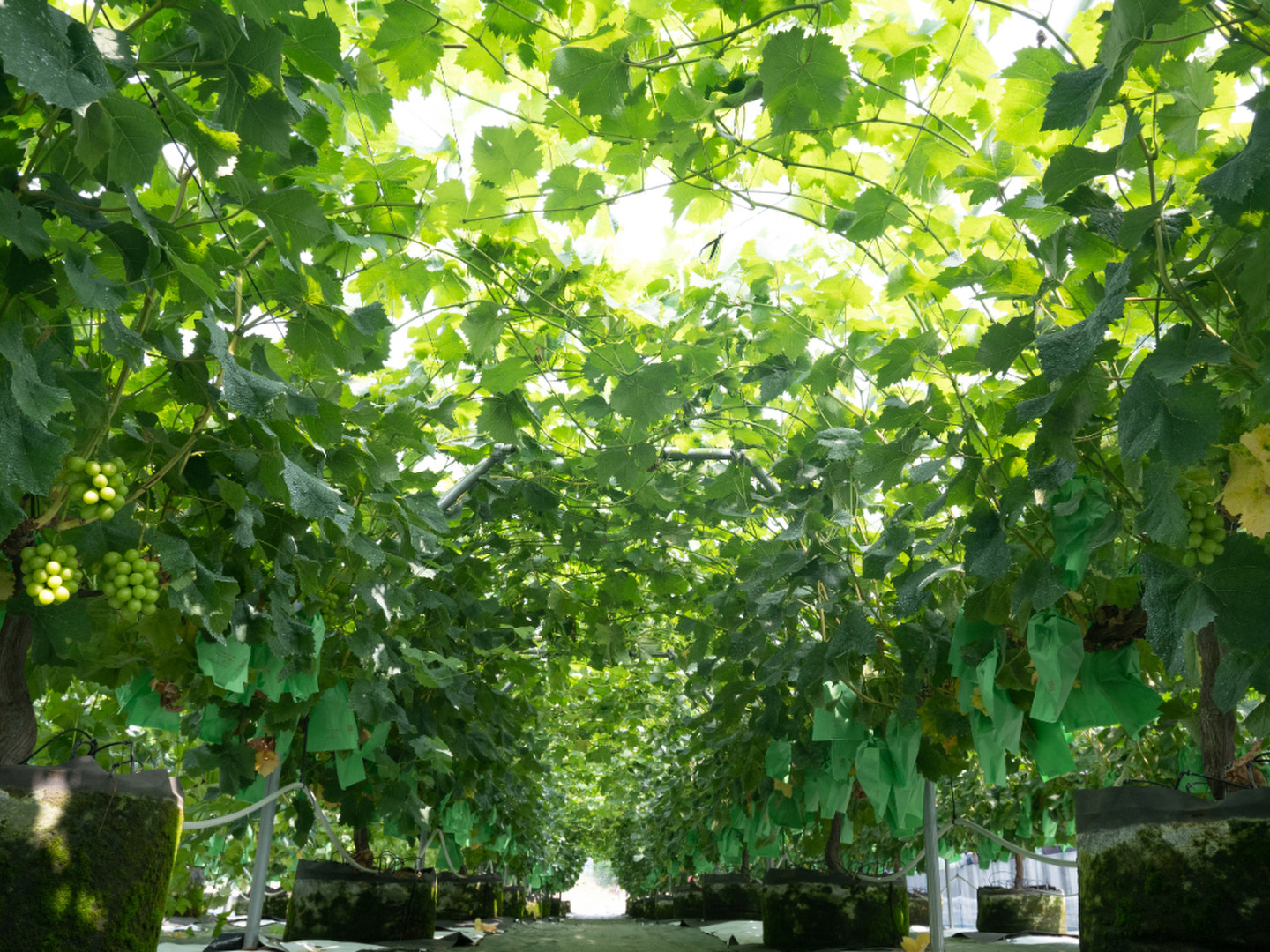 これによって気象条件に左右されずに、高く安定した品質のブドウを作る事が出来ています。