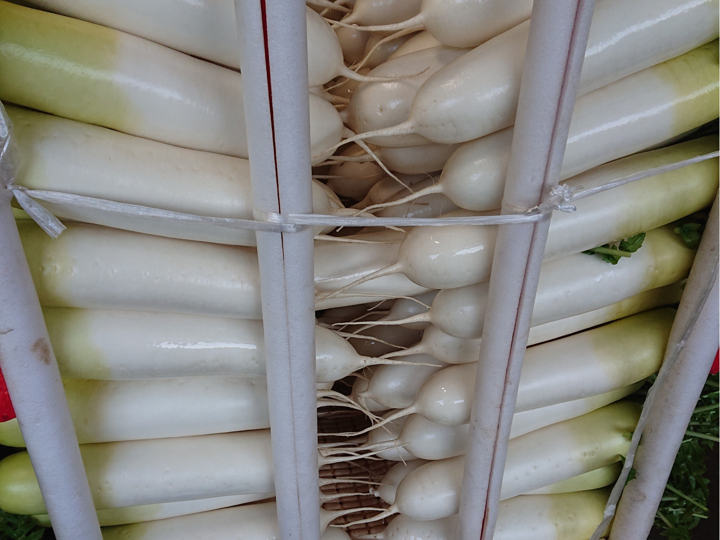 首と尾を切り落とし、根長約20cm以上の大根の詰め合わせです。