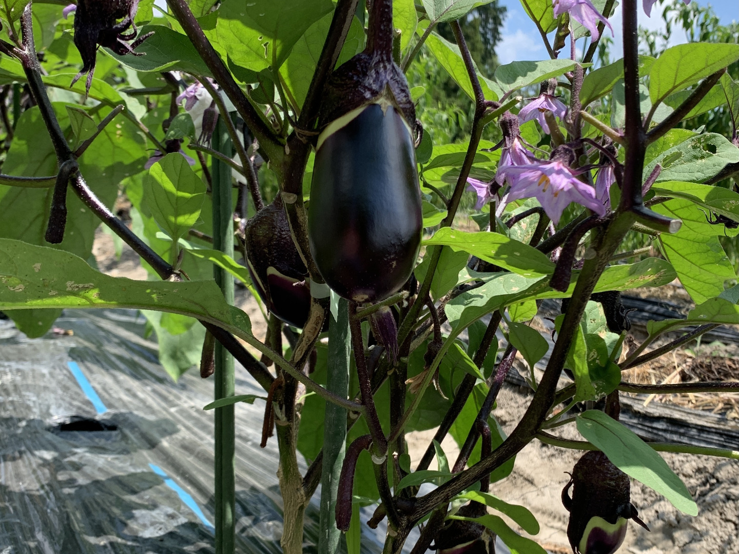 下田ナスは滋賀県湖南市の伝統野菜です。他のナスに比べると小ぶりですが水分たっぷりで柔らかな実と薄い皮が特徴です。実は甘みがありアクが少なくジューシーです。その分、栽培には苦労も多くデリケートな野菜です。