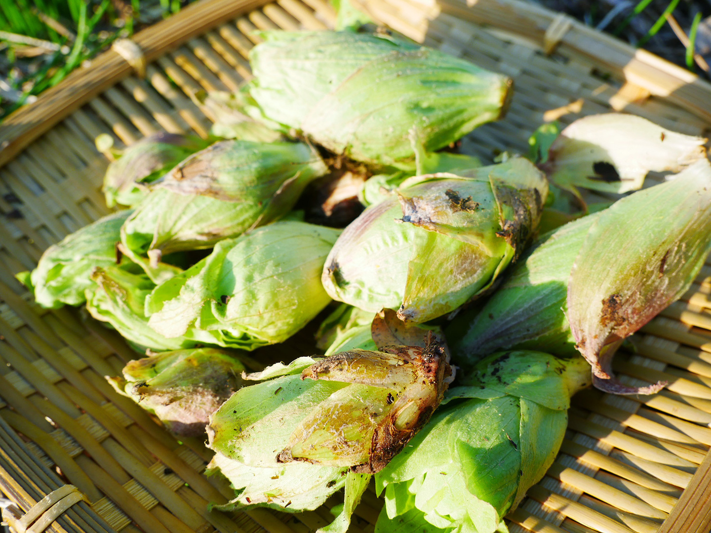 霊峰白山のふもとで人の手を借りずにのびのび育ったフキノトウだけを使用しています。
