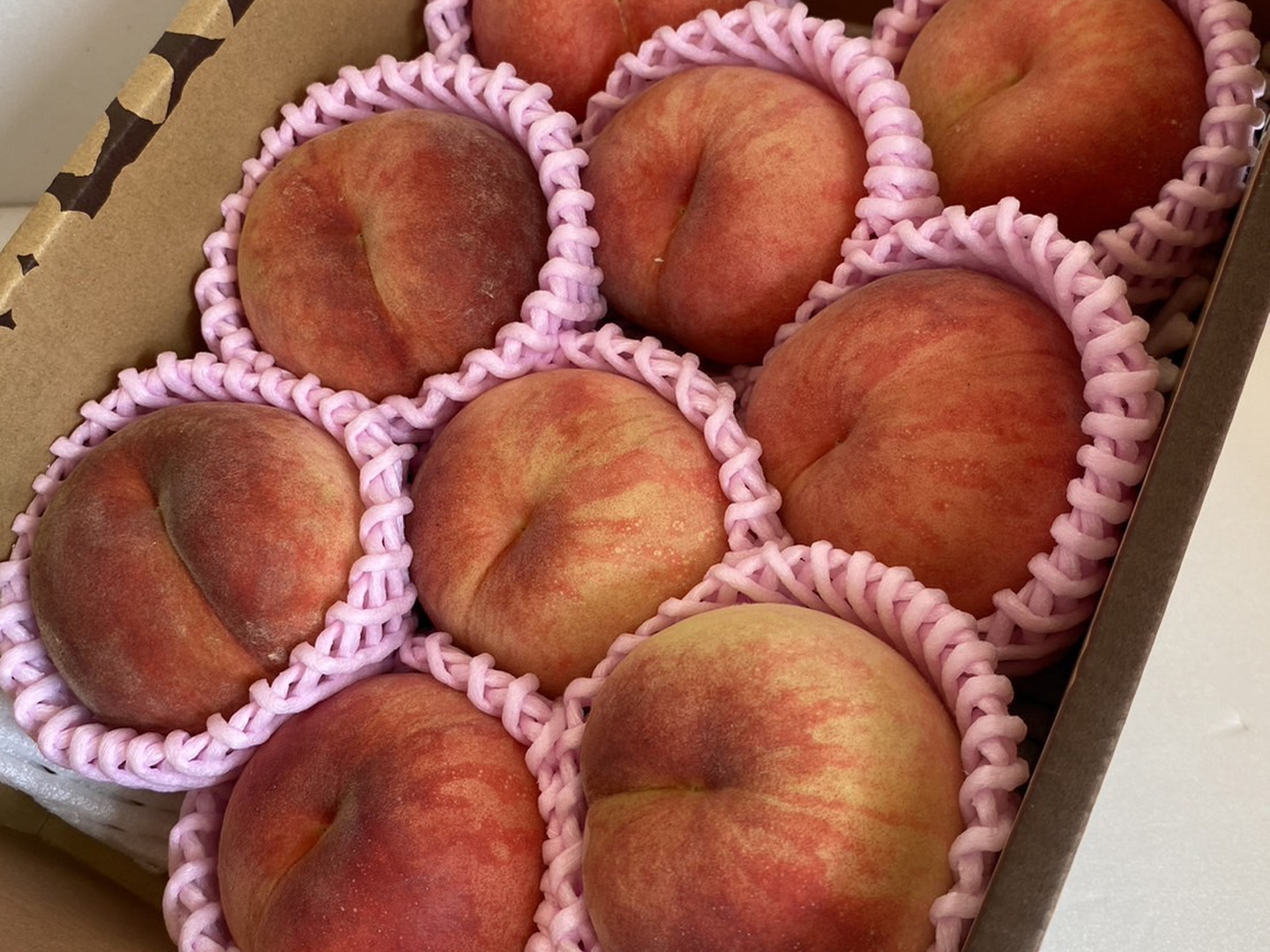 陽夏妃(ようかひ)は、「川中島白桃」の枝変わり品種である「いけだ」の自然交雑実生として福島県伊達市で育成され、2009年に登録された比較的新品種の桃です✨