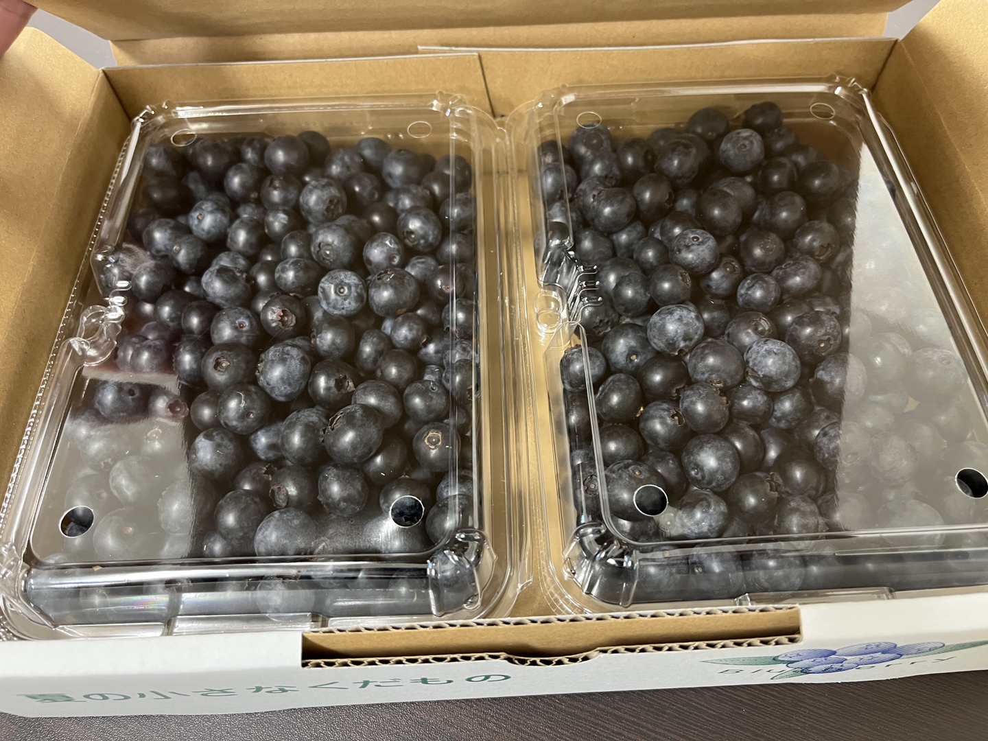 (ブルーベリーに白い粉がついている場合がありますがブルームというもので新鮮な証拠です。農薬ではございません。)