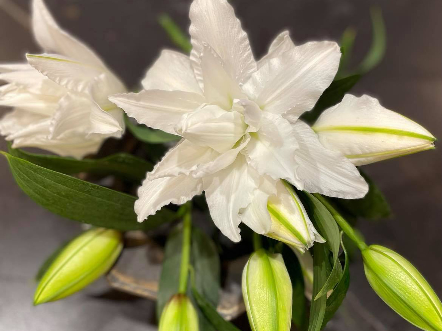 【久々登場】■ホワイトトルネード5本束■白八重ユリさん♥小ぶり!?で飾りやすさに定評があります!!簡易包装