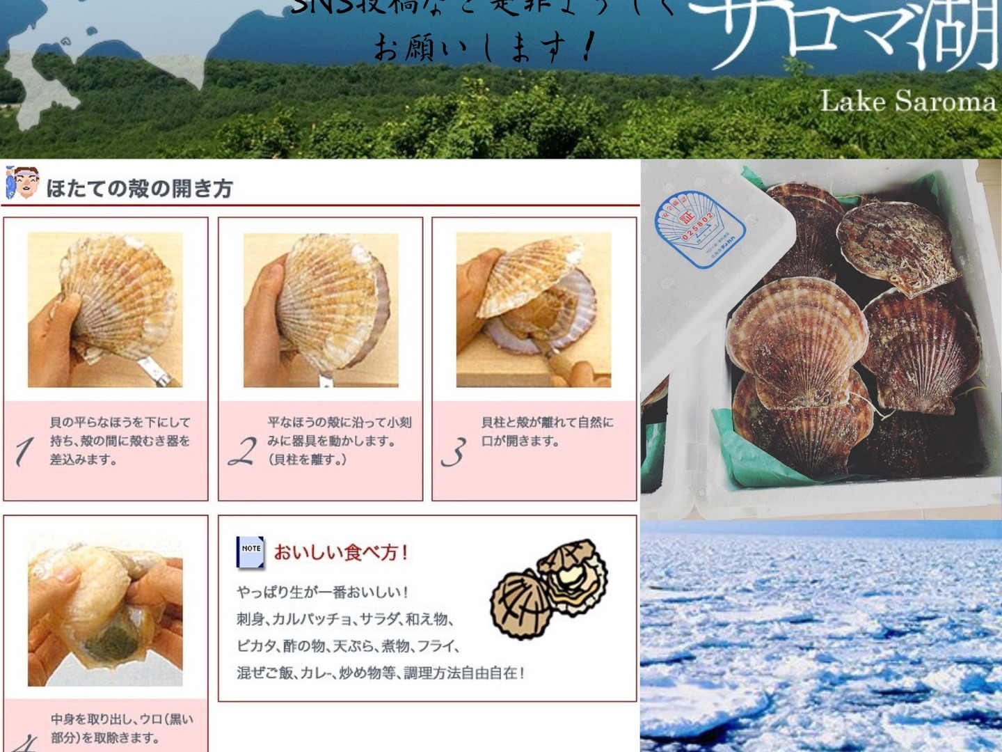 ・ホタテを食べる際、中腸腺(ウロ)は食べられませんので必ず取り除くようお願いします