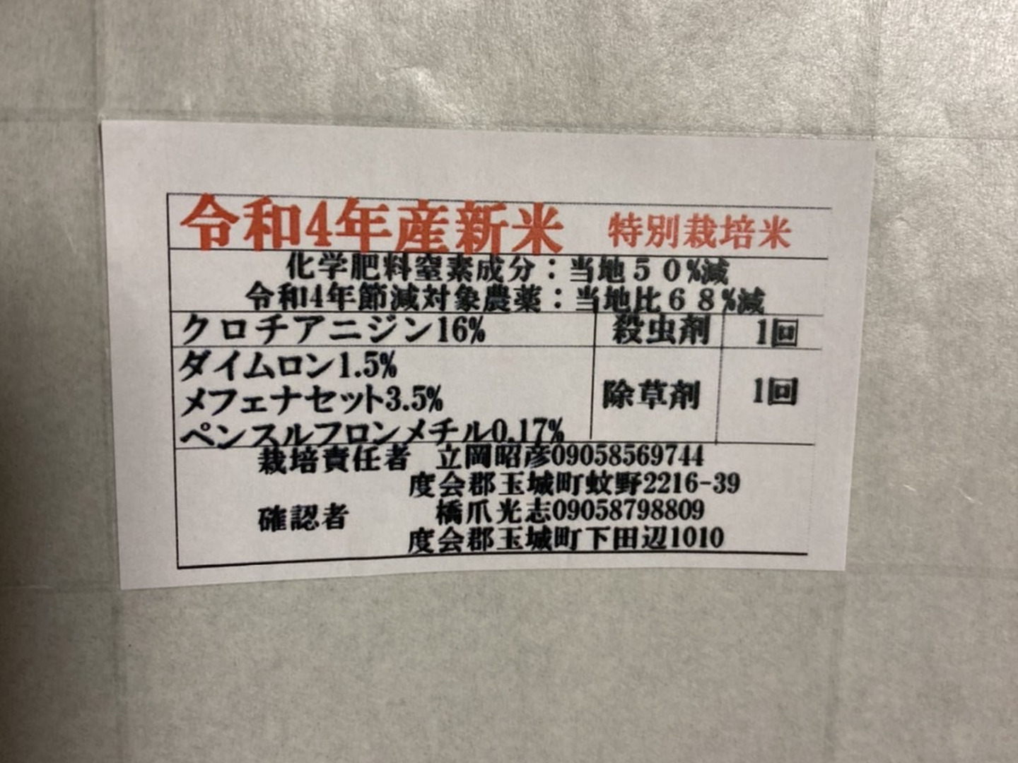 - 令和4年産新米