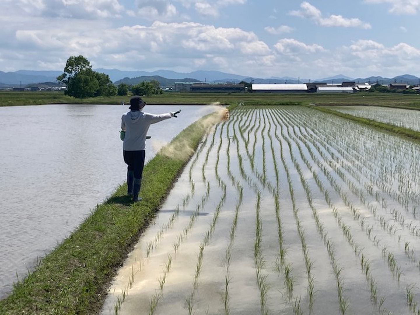 『タモじぃー米』は、できる限り農薬を使用せずに栽培を行っています。使用するケースは、田植え3日後に初期除草剤(3有効成分)を1回限り使用しています。なお、三重県におけるコシヒカリ慣行栽培は、成分回数16回です。