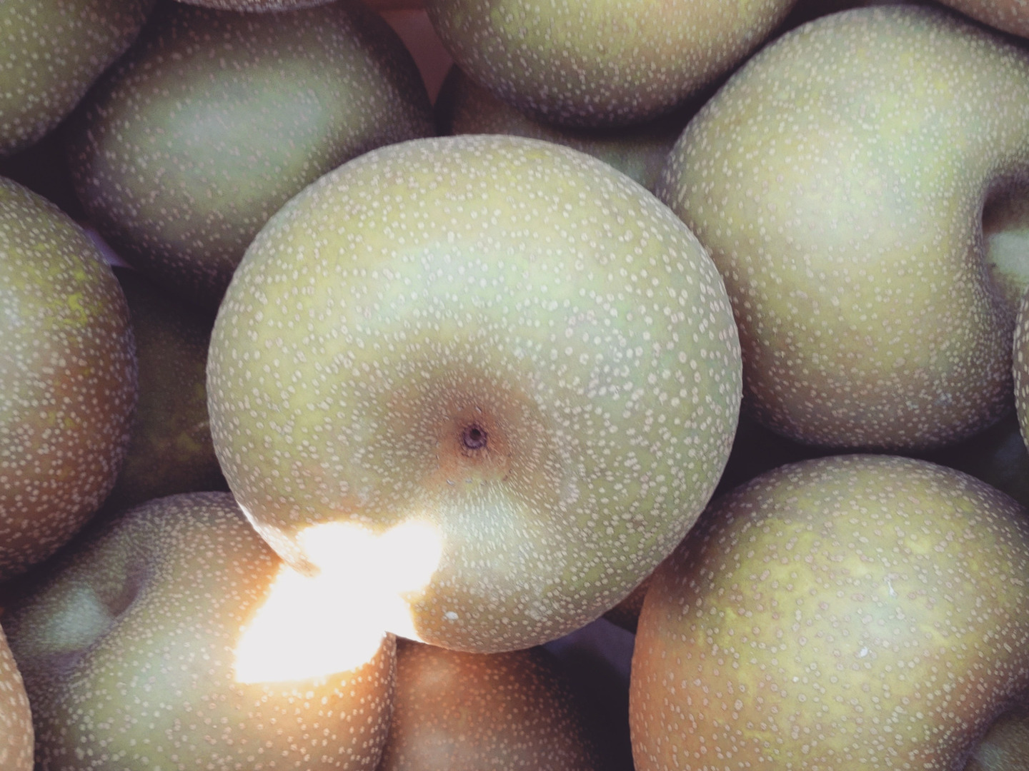 青梨で大玉!!常温保存すると追熟し、冷蔵庫にいれると追熟はおさえられます