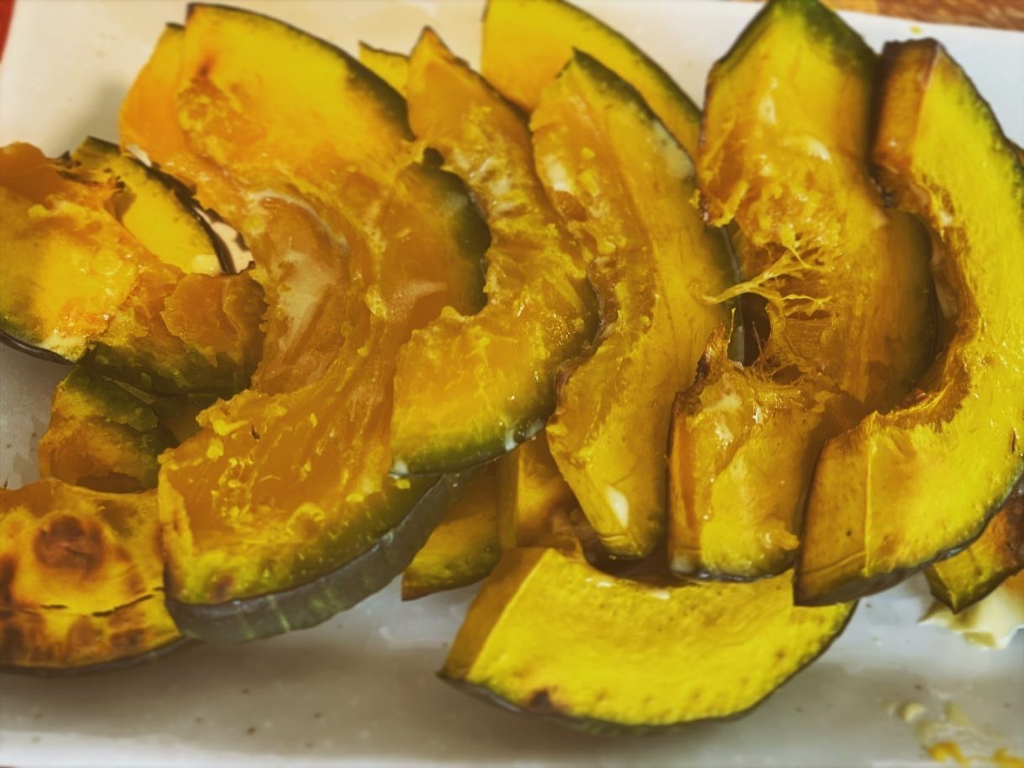 ・切ってしまったカボチャは切り口をラップ等でまき、野菜室で保管し、お早めにお召し上がりください。