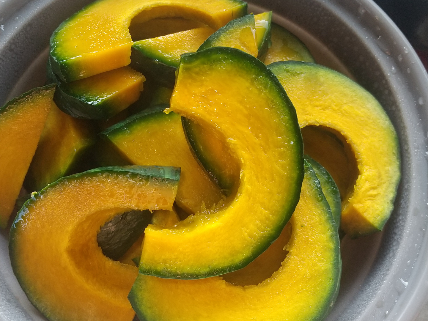 普通のかぼちゃと比べると、切るのもラクで、一度に使い切れるサイズなので重宝します。小さくても味は抜群、ホクホクで甘味もあります。