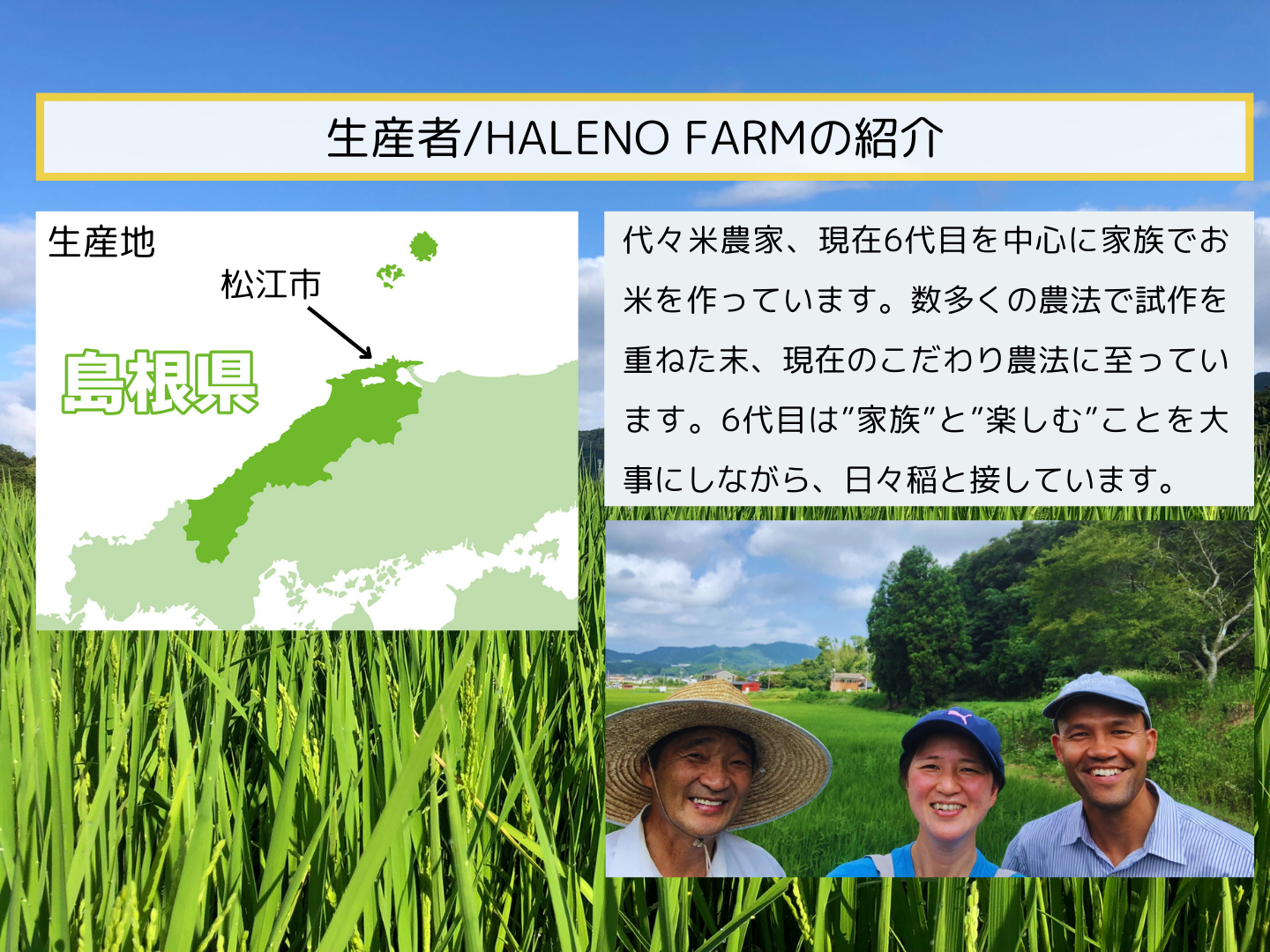 家族で稲作に励む小さな農家 ”HALENO FARM” です。