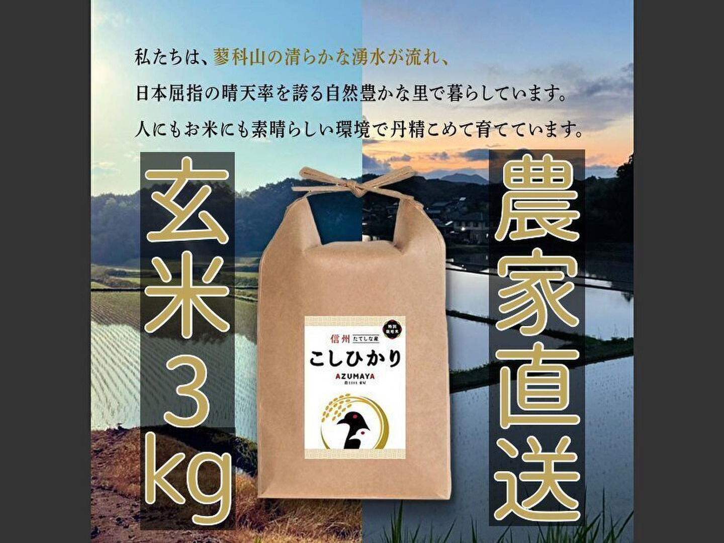 【★玄米3kg 信州たてしな 長野県立科町産コシヒカリ 農家直送】
